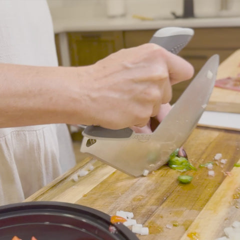 NULU is a game-changer with it’s multi-grip versatility. Whether you need to chop, slice, carve, shave or mince, you have options!