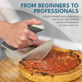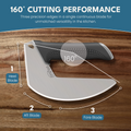 The handle is positioned at the center of the cutting arc to deliver force directly through the arm and hand. The result is a uniquely versatile knife that can deftly handle the majority of kitchen cutting tasks all with low impact on muscles and joints.