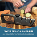 All blades dull over time. Our adjustable handheld knife sharpener is the perfect tool to keep your NULU in peak cutting form. This sharpener not only works great for the NULU, it will sharpen all of your traditional kitchen knives too. There is even a sharpening port for scissors.